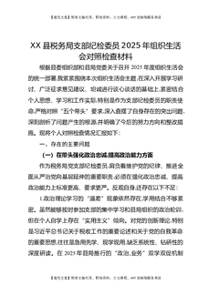 XX县税务局支部纪检委员2025年组织生活会对照检查材料.docx