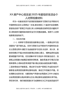 XX房产中心党支部2025年度组织生活会个人对照检查材料.docx