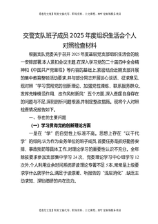 交警支队班子成员2025年度组织生活会个人对照检查材料.docx