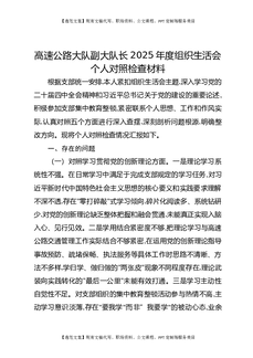 高速公路大队副大队长2025年度组织生活会个人对照检查材料.docx