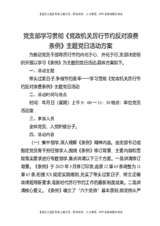 党支部学习贯彻《党政机关厉行节约反对浪费条例》主题党日活动方案.docx
