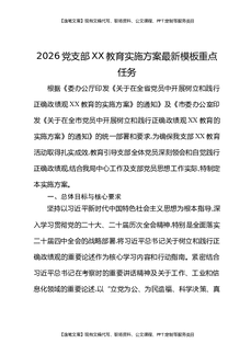 2026党支部XX教育实施方案最新模板重点任务.docx