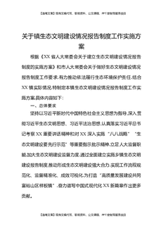 关于XX镇生态文明建设情况报告制度工作实施方案.docx