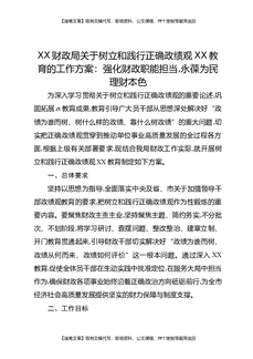 XX财政局关于树立和践行正确Z绩观XX教育的工作方案:强化财政职能担当,永葆为民理财本色.docx