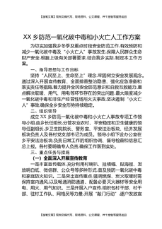 XX乡防范一氧化碳中毒和小火亡人工作方案.docx