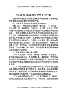 XX镇2026年食品安全工作方案.docx