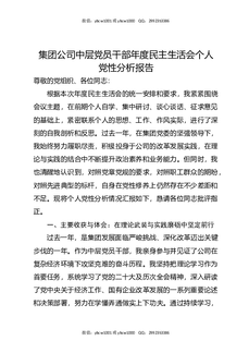 集团公司中层党员干部年度民主生活会个人党性分析报告.docx