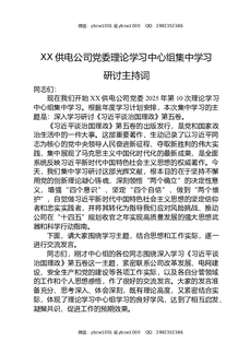 XX供电公司党委理论学习中心组集中学习研讨主持词.docx