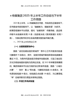 X传媒集团2025年上半年工作总结与下半年工作思路计划.docx