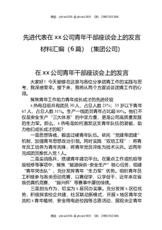 先进代表在XX公司青年干部座谈会上的发言材料汇编(6篇)(集团公司).docx