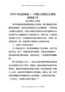 202X年先进事迹——中国人民银行公德奖获得者李X.docx