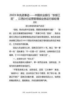 202X年先进事迹——中国农业银行“农银工匠”,江西分行运营管理部业务运行部经理田XX.docx