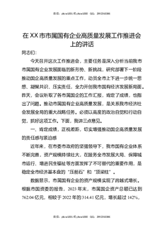 在XX市市属国有企业高质量发展工作推进会上的讲话.docx