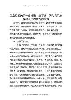 国企纪委关于一体推进“三不腐”深化党风廉政建设工作情况的报告.docx