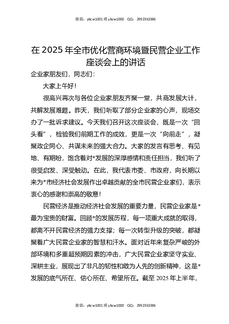 在2025年全市优化营商环境暨民营企业工作座谈会上的讲话.docx