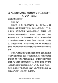 在XX市优化营商环境暨民营企业工作座谈会上的讲话(精品).docx