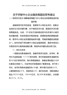 关于纾解中小企业融资难题的思考建议.docx