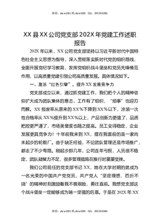 XX县XX公司党支部202X年党建工作述职报告.docx