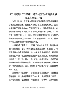 XX县打好“五张牌”助力民营企业高质量发展工作情况汇报.docx