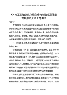 XX市工业和信息化局在全市制造业高质量发展推进大会上的讲话.docx