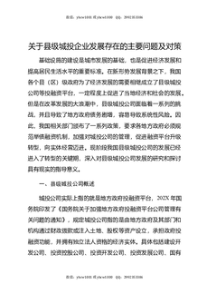 县级城投企业发展存在的主要问题及对策(调研报告参考).docx