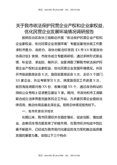 我市依法保护民营企业产权和企业家权益,优化民营企业发展环境情况调研报告.docx