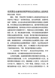 在民营企业家培训班开班仪式动员会上的讲话.docx