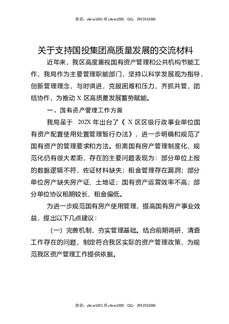关于支持国投集团高质量发展的交流材料.docx