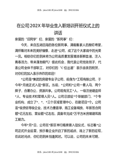 在公司202X年毕业生入职培训开班仪式上的讲话.docx