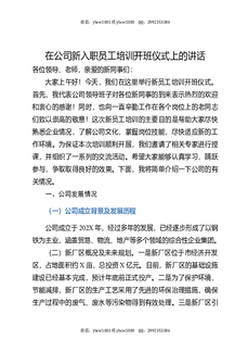 在公司新入职员工培训开班仪式上的讲话.docx