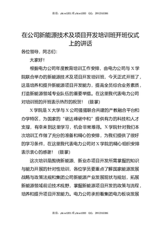 在公司新能源技术及项目开发培训班开班仪式上的讲话.docx