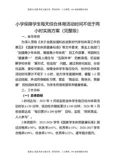 小学保障学生每天综合体育活动时间不低于两小时实施方案(完整版).docx