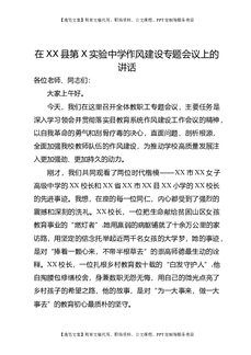 在XX县第五实验中学作风建设专题会议上的讲话.doc