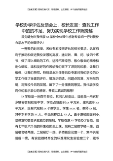 学校办学评估反馈会上,校长发言:查找工作中的的不足,努力实现学校工作新跨越.docx