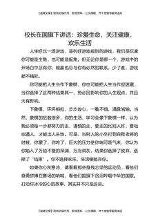 校长在国旗下讲话:珍爱生命,关注健康,欢乐生活.docx