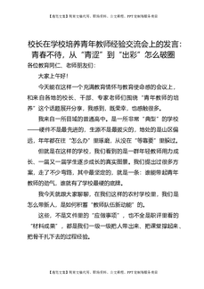 校长在学校培养青年教师经验交流会上的发言:青春不待,从“青涩”到“出彩”怎么破圈.doc