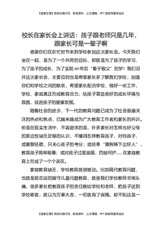 校长在家长会上讲话:孩子跟老师只是几年,跟家长可是一辈子啊.docx