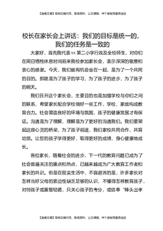 校长在家长会上讲话:我们的目标是统一的,我们的任务是一致的.docx