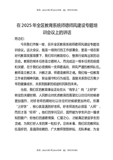 全区教育系统师德师风建设专题培训会议上的讲话.docx