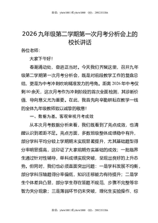 2026九年级第二学期第一次月考分析会上的校长讲话.doc