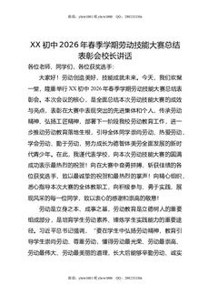 XX初中2026年春季学期劳动技能大赛总结表彰会校长讲话.doc