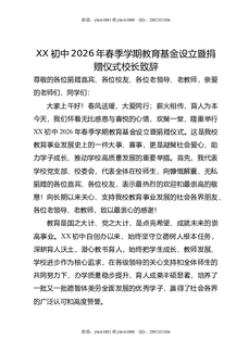 XX初中2026年春季学期教育基金设立暨捐赠仪式校长致辞.doc