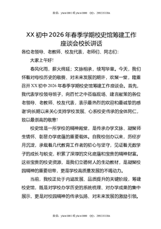 XX初中2026年春季学期校史馆筹建工作座谈会校长讲话.doc