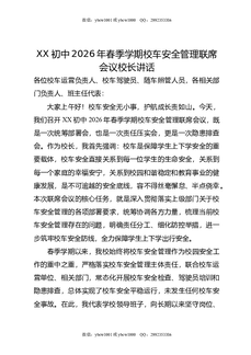 XX初中2026年春季学期校车安全管理联席会议校长讲话.doc