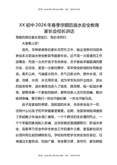 XX初中2026年春季学期防溺水安全教育家长会校长讲话.doc