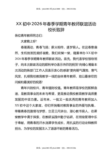 XX初中2026年春季学期青年教师联谊活动校长致辞.doc
