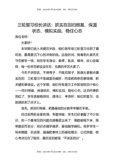 三轮复习校长讲话:抓实在回归根基,保温状态,模拟实战,稳住心态.docx