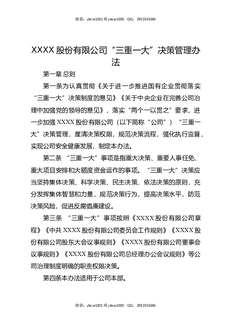 XXXX股份有限公司“三重一大”决策管理办法(附权限清单).docx