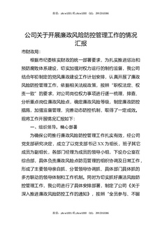 公司关于开展廉政风险防控管理工作的情况汇报.docx