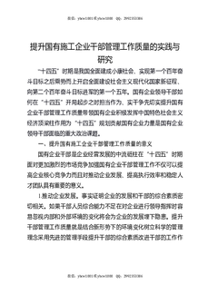 提升国有施工企业干部管理工作质量的实践与研究(调研报告).docx